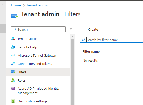 - Go to Tenant admin – Microsoft Intune admin center (Tenant Admin \ Filters \ )