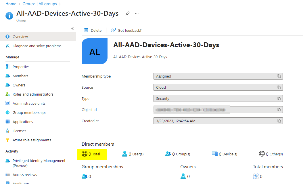 Who gently asked me if would be possible to create a d0evice cloud-based security group from the “lastSyncedDate” attribute then I opened the AAD Portal or Intune Groups to double-check the attributes and how to solve this.