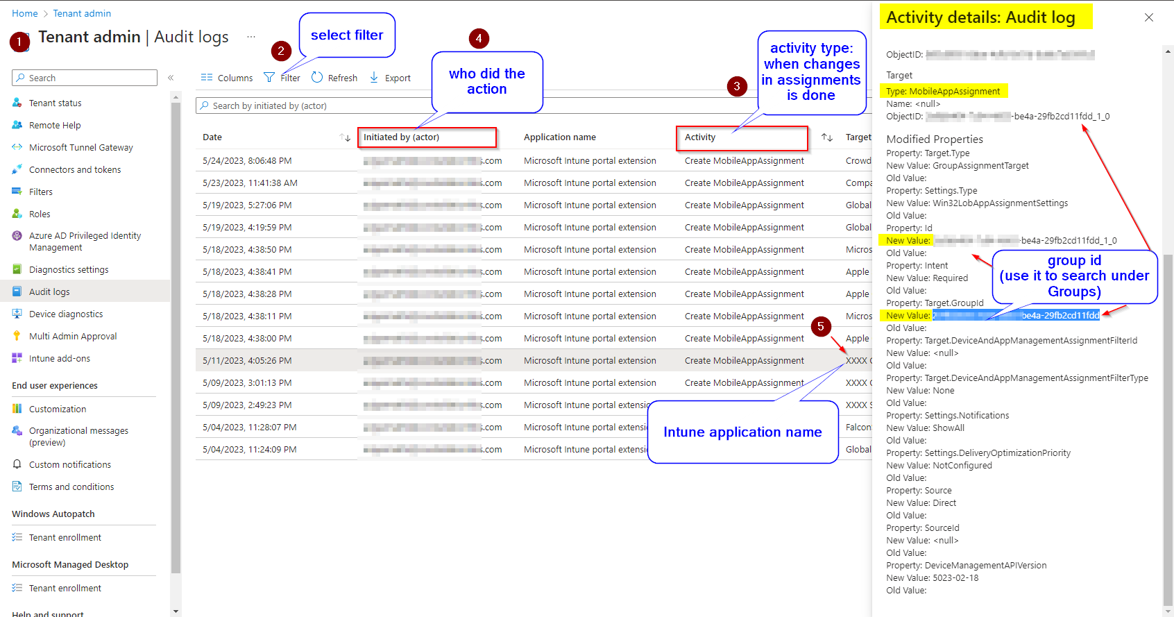- then select Audit logs => or direct link Activity details: Audit log – Microsoft Intune admin center (1)